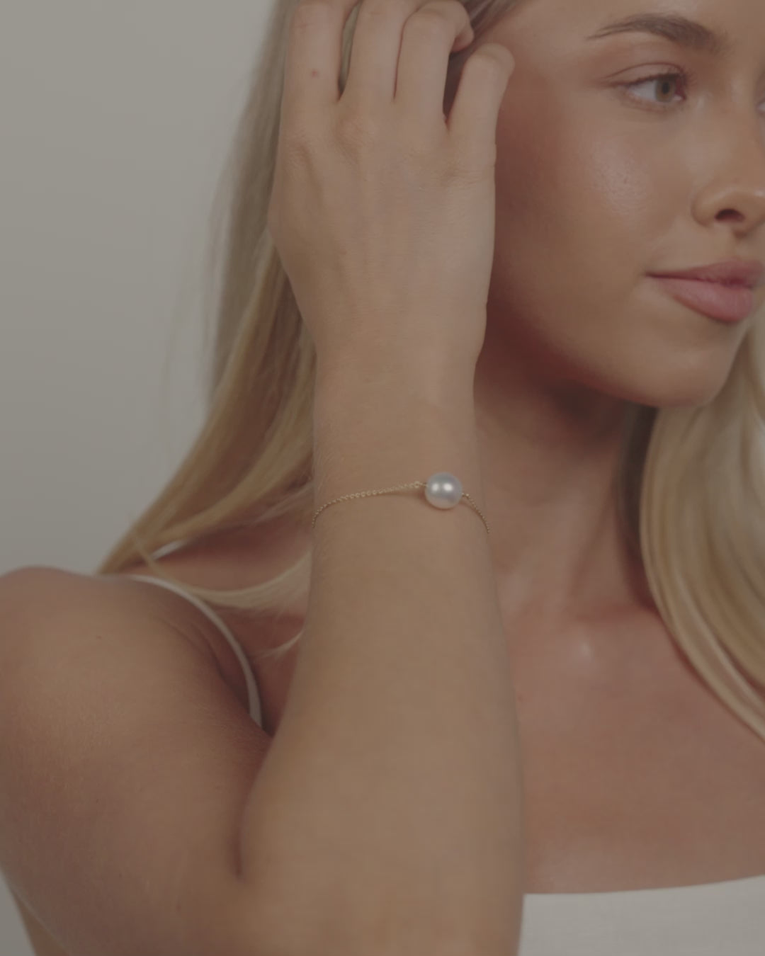 A delicate expression of elegance, the Flora Pearl Bracelet features a luminous Australian South Sea pearl at its centre, strung on a fine 18k yellow gold chain. Finished with the signature floral charm from our Flora collection—set with mother of pearl and diamonds—it’s a timeless piece that captures natural beauty in every detail.