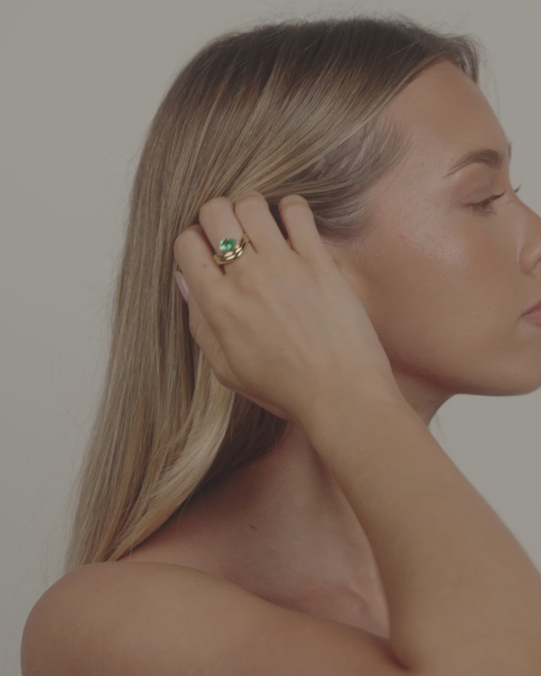 Inspired by the effortless rhythm of the sea, The Delmare captures the beauty of movement in its most refined form. A vivid 0.80ct Colombian emerald, pear-cut and luminous is set within a sculptural wave of 18k yellow gold, its hybrid claw-under bezel setting offering both security and softness.