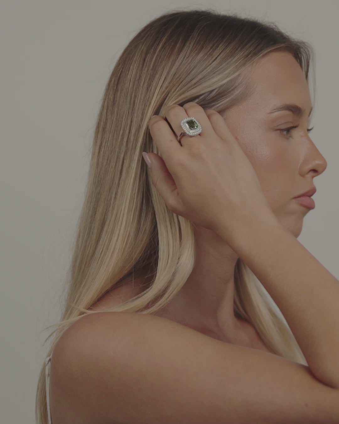 An ode to still waters and faraway shores, The Isola Ring evokes the quiet luxury of escape. At its heart, a cushion-cut mint tourmaline 5.67ct shimmers with a soft, sea-glass glow, cradled in three haloed tiers of 0.71ct white pavé diamonds.